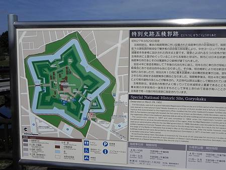 下一站來到了五陵郭城跡,它是早在西元1857年為防衛北領土為目的,歷經7年歲月花費巨資所興建的日本第一座西洋式城堡,宛如星星五陵狀,故而得名。就像我們在電視中看到的,有護城河,有碑,有城堡,和我們台南的古蹟有著類似的意義,抱著懷舊的心情到此看看,應該比較容易發思古無疆之幽情吧!