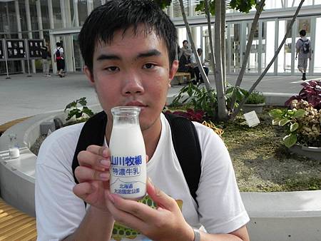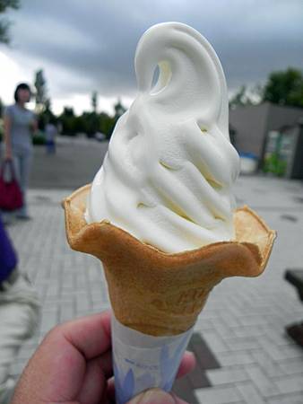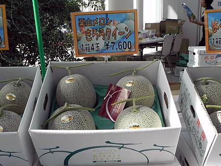 利用了一點兒空檔,在下一個行程之前,品嚐了北海道特濃的鮮乳,的確如台灣的廣告所言,那樣的「濃、純、香」。可是,旁邊販賣的水果可不便宜呢!一支玉米(生的),是比台灣的大一些,要價200日幣(約台幣76元)(PS目前匯率100日元約兌換38元台幣),煮熟的就要300日幣~搶錢喔!四顆哈密瓜,SIZE是不小,要價7600日幣,相當2888台幣,天啦,一顆平均722台幣,在台灣,誰還買得了手?這時,真的想起了一首老歌~台灣好!…