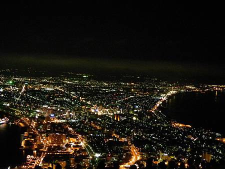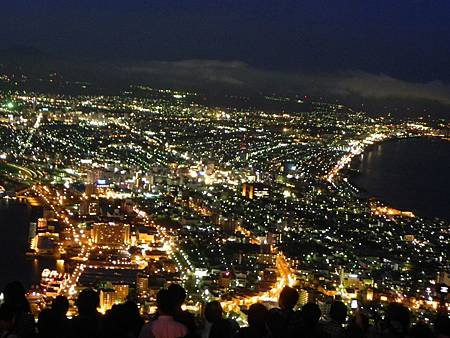 果然不出所料,華燈初上時分,再次來到早上搭纜車的地方,早已人聲鼎沸,不過,排隊的秩序可沒亂過。行動不便的身心障礙者,還可以優先上車,這點兒到還滿人性的。纜車的容量大約可載100—120人左右,單趟時程約三分鐘。隨著纜車的高度節節上升,大夥兒的心情也就越來high,下了纜車,幾乎有志一同~往山上的最高處前進,這就是所謂的登高才能望遠!此時,更是驚呼連連!由於地形的關係,函館從這裡望下去,像個身材曼妙的MODEL,呈現X狀的曲線,兩邊則是港灣,萬家燈火的壯觀場景,實在很難用筆墨形容之。此時,更覺得讀萬卷書的同時,更要行萬里路。親眼見一回,有時勝過紙上千百回!今夜,我將會帶著在函館燦爛的星夜,與華麗耀眼的美景,一起許願和入夢……願大家都有個平安喜樂的一生……北海道之旅的隨手記,我們明天見!……