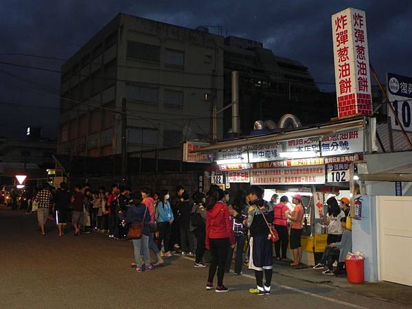 來到復興街的「炸蛋蔥油餅」,雖然才晚上六點多(他們下午13:40才開賣),但第一回合的造訪,卻差點兒撲了個空。弟弟那攤長長的人龍,要等108個,早就掛起了「明日趁早」的免戰牌;哥哥那家拿到了「最後一張」的號碼牌,也只剩下2份,三人只好先湊和著吃。第二次再度光臨,是在臨上火車前的最後一站,特扡在他們開賣時就去排隊。這次改排弟弟的攤位,兩相比較,其實差不多呢!有些地方的蔥油餅,總離不開「油」字。但這次品嚐的炸蛋蔥油餅,卻沒有太多油膩的感覺。更讓人懷念的是,包在蔥油餅中間半生不熟的蛋,一口咬下,蛋黃還會流出來,這才是我最想念它的地方。難怪每天都有這麼多的人願意在這裡守候。